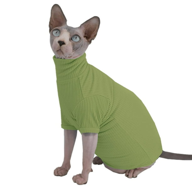 Sphynx Cats Shirt Cat Turtleneck Cotton Sweater Pullover Kitten T Shirts With Sleeves Cat Pajamas Jumpsuit For Sphynx Cornish Rex Devon Rex Peterbald Medium Pack Of 1 Green Yellow Walmart Com